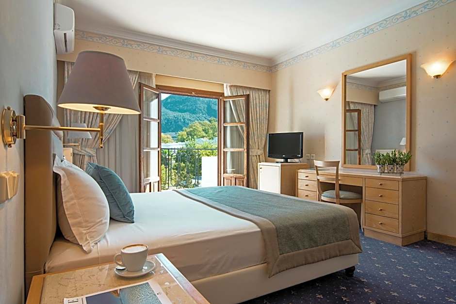 Double or Twin Superior Sea View is 344 square feet and includes 2 single beds 80-130 width plus satellite tv , tea and coffee making facilities , and slippers.